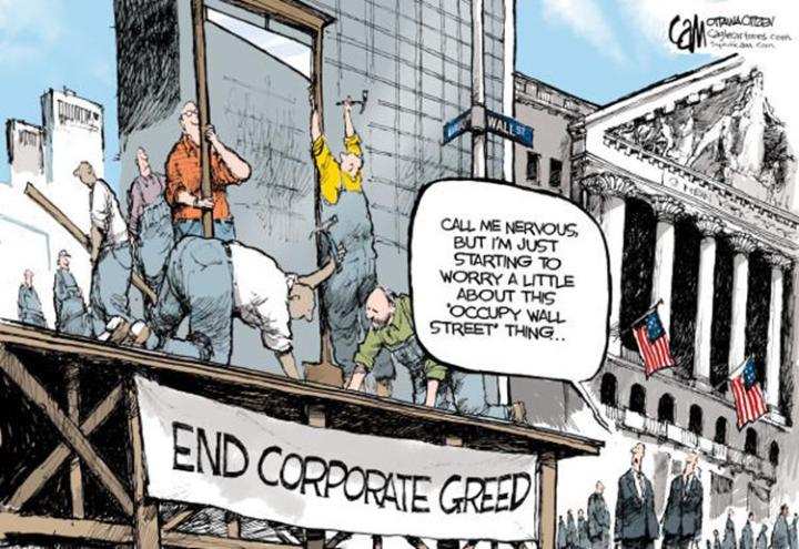 The Occupy movements had generated a new political discourse that focused on economic inequalities, greed and the corruption of Wall Street and financial institutions, and the need for people to organize and demonstrate to force the government to meet their needs. As evidence that the Occupy movements were constituting a threat to the established system of power in November 2011, police and city governments closed down some of the biggest Occupy tent sites, sometimes violently, yet people continued to rally to the cause of the movement and demonstrations, occupations, and actions continued through the year. The brutality pictured in the closing down of the Occupy Wall Street site on December in Z park presented images of a fascist police state as images documented police beating up demonstrators, tearing apart and bull-dozing their camp-sites, and throwing their possessions in garbage trucks, including the Occupy Wall Street library that had collected over 5,000 books.