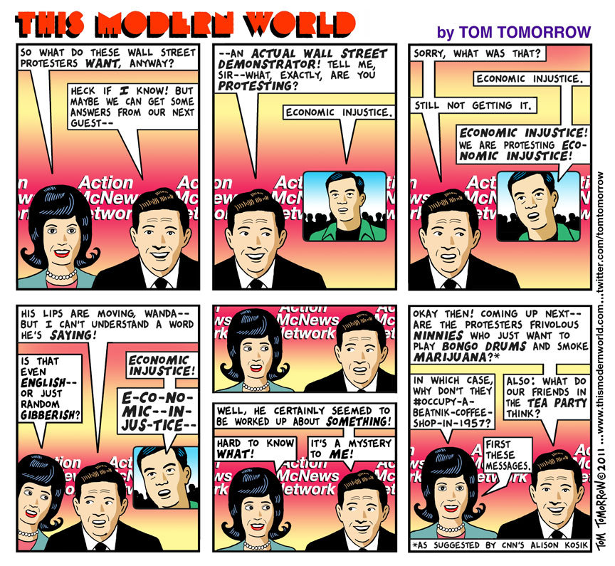 As it has come to own all major political stories of 2011, the Guardian was initially the place to go for Occupy Wall Street in the global media, with a Live Blog documenting news and actions related to the movement, and a web-page collecting their key stories with links to other stories at http://www.guardian.co.uk/world/occupy-wall-street (accessed on October 3, 2011). As the Occupy movement came to London, the Guardian focused special attention on their local occupation that involved dramatic clashes with the City of London and Catholic Church when occupiers set up a camp outside the venerable St. Paul’s Cathedral; church debates over how to deal with the occupation led high-ranking officials to resign.