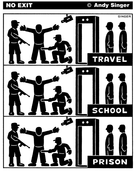 This new mode of authoritarian governance is distinct from the fascism that emerged in Germany and Italy in the mid part of the twentieth century. As Sheldon Wolin has pointed out, big business in this new mode of authoritarianism is not subordinated to a political regime and the forces of state sovereignty, but now replaces political sovereignty with corporate rule. In addition, the new authoritarianism does not strive “to give the masses a sense of collective power and strength, [but] promotes a sense of weakness, of collective futility [through] a pervasive atmosphere of fear abetted by a corporate economy of ruthless downsizing, withdrawal or reduction of pension and health benefits; a corporate political system that relentlessly threatens to privatize Social Security and the modest health benefits available, especially to the poor.” [11] According to Wolin, all the elements are in place today for a contemporary form of authoritarianism, which he calls “inverted totalitarianism.”