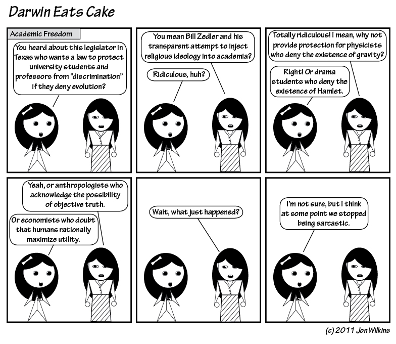 The betterment of students is no less complex, though for somewhat different reasons. There are different views of just what constitutes bettering our students’ lives. The most obvious form of betterment is preparing them for a career. The standard alternative is giving students general intellectual training for life. The difference here is fundamentally that between professional training and liberal education. The value of liberal education is a separate issue and I will simply assume that most people debating academic freedom agree that both professional training and liberal education have value. Professional training seems to have the usual professional requirements for academic freedom — the ability to train students in professional topics, conclusions, and methods, without interference from the state, etc. This holds for one view of general intellectual life as well. However, as in the case of advancing knowledge, it is always possible for someone to take a dissident stance with respect to the common wisdom of a field. Indeed, the point may be more general. One might argue that the advancement and dissemination of knowledge require continual creativity. Creativity is almost always stifled by the ossification of insights into dogmas. Even in the most rigorous sciences, it is almost certainly the case that currently well-established theories will be revised, perhaps even discarded, in the future. Thus in a way it does not really matter what one’s attitude is toward current professional views. One may agree with them whole-heartedly while still recognizing that they should not be taken as the final word. In this view, the best way of training students for a general intellectual life after college is by training them to think critically, challenging received opinions.