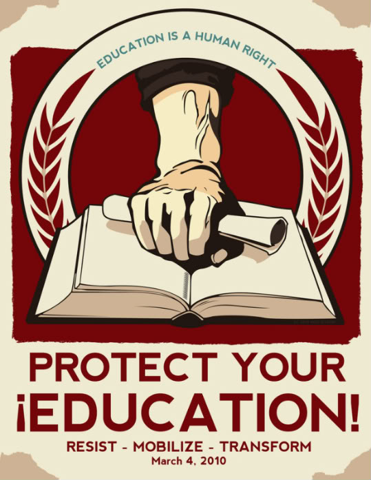 It is time to fight. Educators in higher education and K-12 must mobilize. Education is under attack. The general public and educators themselves are bombarded with information about how K-12 education and higher education is in a time of crisis (Giroux, 2012; Hill, 2012; Kincheloe, 2007). But there is no crisis. The “crisis” has been manufactured in an effort to discredit public education and restructure it as a market good in the consume-ocracy (Giroux, 2012; Hill, 2012; Kincheloe, 2007). This is the “shock doctrine” of capitalism (Klein, 2007). Capitalism is an economic system based on greed and accumulation (Klein, 2007). In order to perpetuate itself, capitalism and the capitalists must find newer and more destructive methods to make a profit (Giroux, 2011; Klein, 2007). Crisis, whether real or manufactured offers a great opportunity to accomplish this task. Natural disasters, armed conflict and tragedies are exploited and then milked for their ability to bring in profits. Klein argues the second Iraqi war of 2003 is a perfect example of the shock doctrine of capitalism (Klein, 2007). The tragedy of September 11th was exploited, and then the corresponding fear and anxiety over terrorism and weapons of mass destruction was then used as a pretext to invade Iraq. Iraq was then made into a “free market paradise” (pg. 101). Western contractors, private companies and entrepreneurs divided the spoils of Iraq and government tax dollars (Klein, 2007).