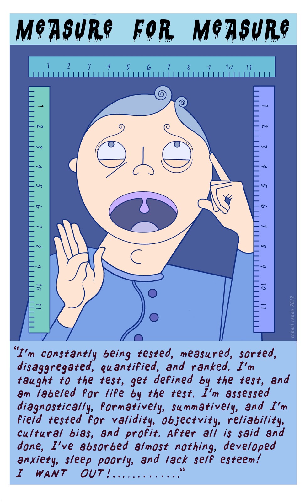 In our frozen state of history, education has become a simulacrum, a referent-less sign. Students are forced to take a mountain of standardized tests despite the fact that the tests signify nothing. They do not represent learned material or acquisition of skills (Leistyna, 2007). And still, republicans and democrats alike urge accountability based solely on these test scores. Schools are punished based on these test scores. Privatization is hailed as the cure all for the woes of the public education system (McLaren, 2007). The public ethos and the system of public education itself is branded as socialist, backwards, inefficient and corrupt. It is dismantled and replaced with private schools, virtual for-profit schools and religious schools. All the while test companies such as Pearson rake in billions of dollars to produce tests that are not even scientifically valid.