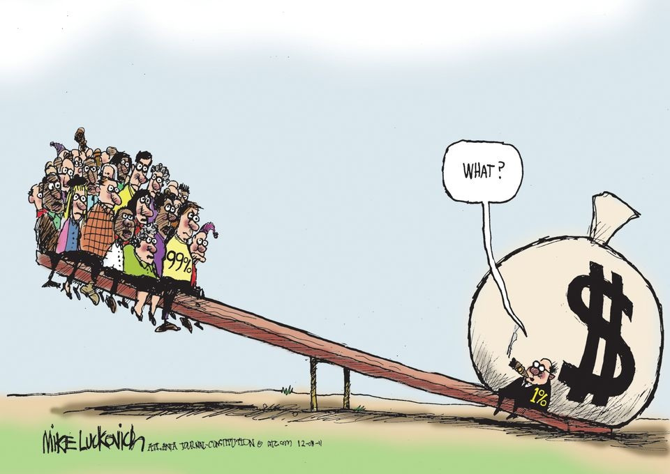 If you own the technology, you can appropriate all the production that people produce socially, today in an increasingly global system, by working with/for the technology. As private property, this production is yours to sell on the market for private profit. The necessities of life are distributed based on individual ability to pay for them. If you own little or nothing, you must sell your labor power to the owners of the technology in order to get money to survive.