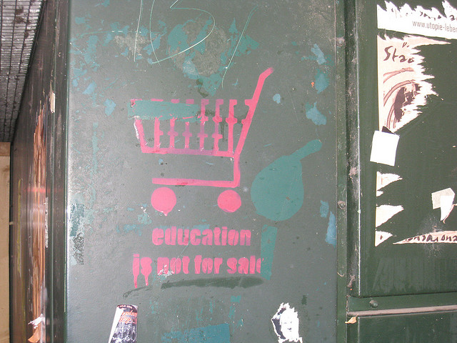 The question of what kind of education is needed for students to be informed and active citizens in a world that increasingly ignores their needs, if not their future, is rarely asked.[9] In the absence of a democratic vision of schooling, it is not surprising that some colleges and universities are increasingly opening their classrooms to corporate interests, standardizing the curriculum, instituting top-down governing structures, and generating courses that promote entrepreneurial values unfettered by social concerns or ethical consequences. For example, one university is offering a master’s degree to students who, in order to fulfill their academic requirements, have to commit to starting a high-tech company. Another university allows career officers to teach capstone research seminars in the humanities. In one of these classes, the students were asked to “develop a 30-second commercial on their ‘personal brand.'”[10] This is not an argument against career counseling or research in humanities seminars, but the confusion in collapsing the two.