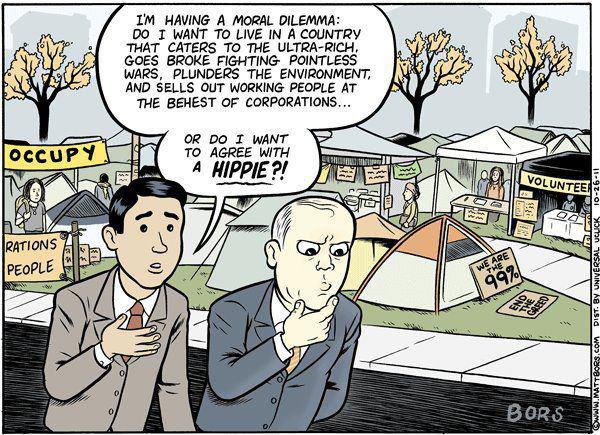 The third vision is the one labeled progressive. This label, however, covers a spectrum of views ranging from a stronger form of liberalism, with greater emphasis on income redistribution and institutional reform, to an audacious call for radical social and political transformation. I will be discussing the progressive vision in this latter sense. Such a vision is seldom spoken of in the mainstream media and thus receives little public exposure. Its proponents are permitted to advance their ideas as long as they keep within safe boundaries, but when they speak too eloquently and awaken more than minimal interest, the red lights begin to flash in the halls of power. At that point, the media either will squelch their proposals with silence or subject them to ridicule and contempt. If progressives succeed in mobilizing some degree of popular support, more drastic measures will be resorted to. They’ll be monitored, infiltrated, scandalized and forcefully crushed, as happened two years ago with the Occupy Movement. Below the radar, however, this vision percolates among receptive minds, spread by progressive web sites, alternative journals and courageous thinkers and writers. It also inspires a few rare politicians not beholden to corporate interests, who reject the platitudes, meek concessions and pragmatic compromises typical of their peers in the other two camps.