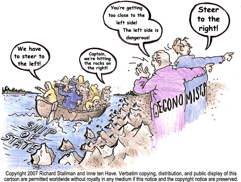 It is obvious that the nonsense posing as economics gained its ideological hegemony because it faithfully serves the interest of the most reactionary elements of capital. Harder to explain is why so many people in so many countries of the world revere economists as gurus. In great part the undeserved credibility of economists results from the systematic fostering of ignorance. Understanding society’s economy is not simple, but no more difficult than understanding the political system sufficiently to vote. People regularly go into voting booths and choose among candidates or reject them all. Most of the same people would profess an economics that leaves them unable to evaluate competing claims about the state of the economy.