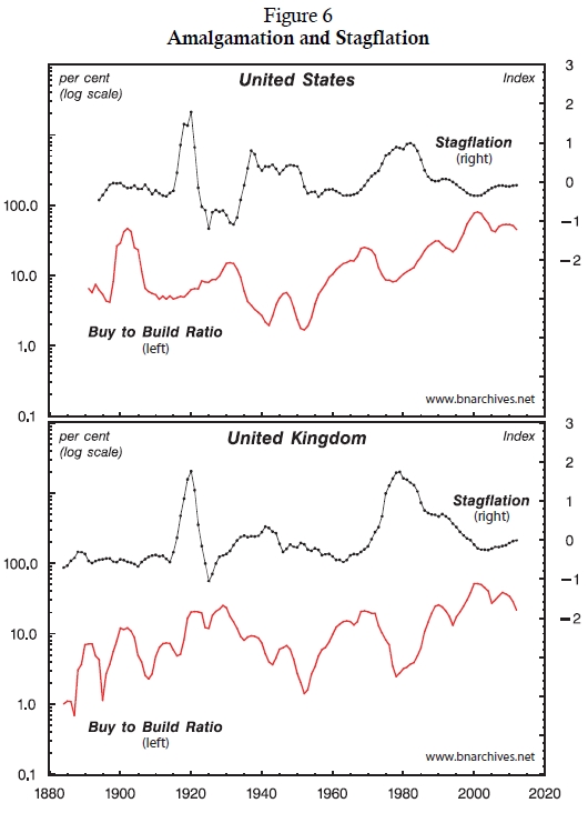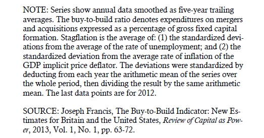 [37] The first version of this figure – for the United States only – appeared in Nitzan (2001: Figure 9, p. 260). Joseph Francis’ meticulous research (2013) corrected an error in our original buy-to-build data for the United States, revised and updated these data till 2012 and provided the first ever long-term estimates for the United Kingdom. For a discussion, see Bichler and Nitzan (2013). Francis’ data and computation are available here: http://bnarchives.yorku.ca/381/03/20131000_francis_the_buy_to_build_indicator_data.xls.