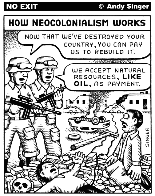 In its stead, less coercive, but even more binding economic ties were secured through ‘aid,’ loans, investments, and post-war institutions like the World Bank and the International Monetary Fund. This ‘neo-colonial’ tactic especially recommended itself because of the needs of the Cold War and the vast economic asymmetries favoring US power. Since the Cold War was also a monumental battle of ideas, US rulers sought to cast aside the ugly, oppressive imagery of colonial administration and military occupation. Further, the enormous need for capital by those under-developed by colonialism or ravaged by war could easily be fulfilled by the US, but at the price of rigid economic ties binding a country to the global capitalist economy now dominated by US capital.