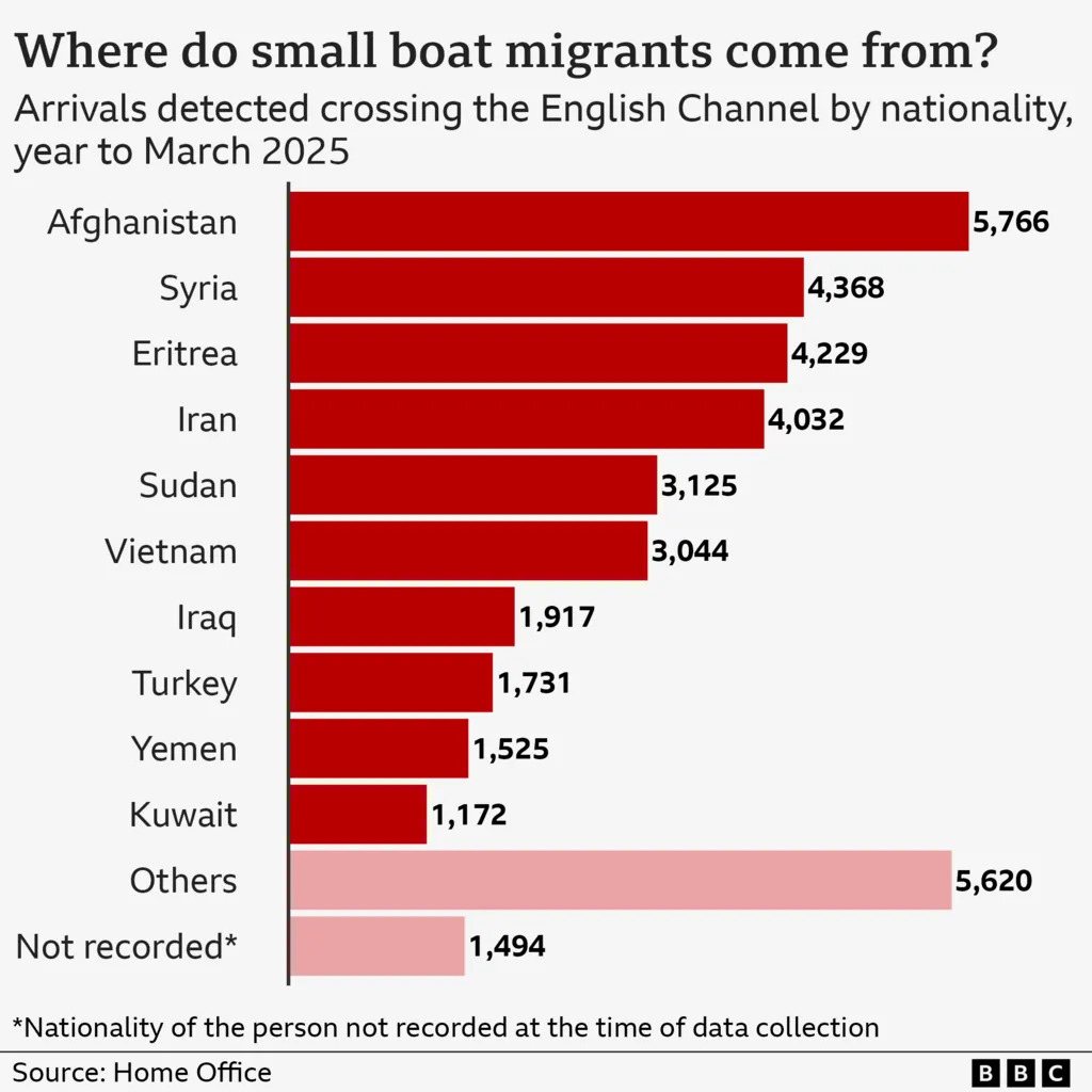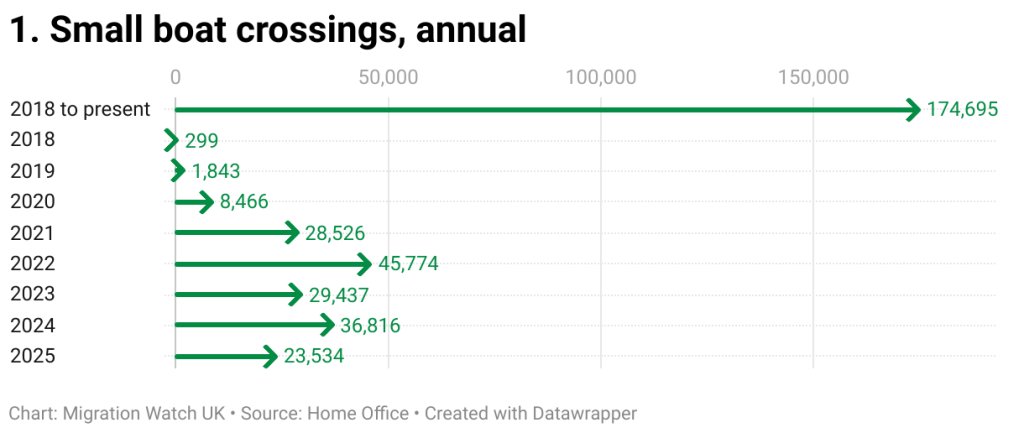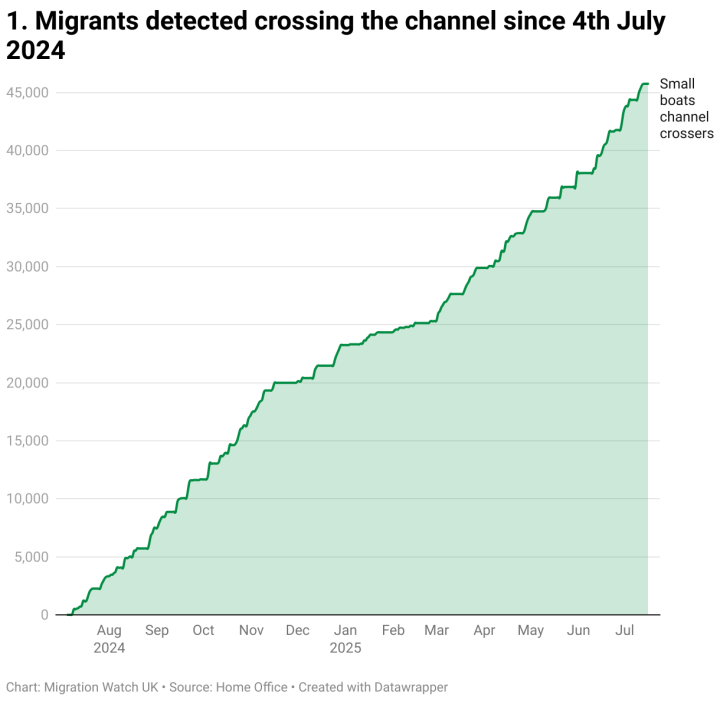 The data is unsurprisingly inconclusive as the UK government wants it to remain uncertain: but there may be about 800,000 illegals in Britain from the influx of so-called ‘asylum seekers’ in recent years. A recent finding claims that 21,117 migrants crossed the English Channel in small boats from January to early July this year: a 56% increase from the same period in 2024. According to Migration Watch UK’s Channel Crossing Tracker, at least 160,000 illegal immigrants (many of whom claim asylum) have crossed the Channel on rubber dinghies. As of 31st July 2025, an addition of at least 600 illegals crossed the Channel into England in a single day, and up to this date a total of least 25,000 illegals have crossed into England.