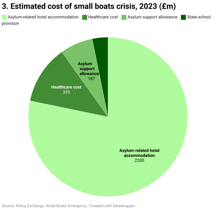 In 2023, the think tank Policy Exchange released a report detailing the public cost of the crisis, estimating that the annual cost of the small boats crisis was ‘in the region of £3.5bn’.