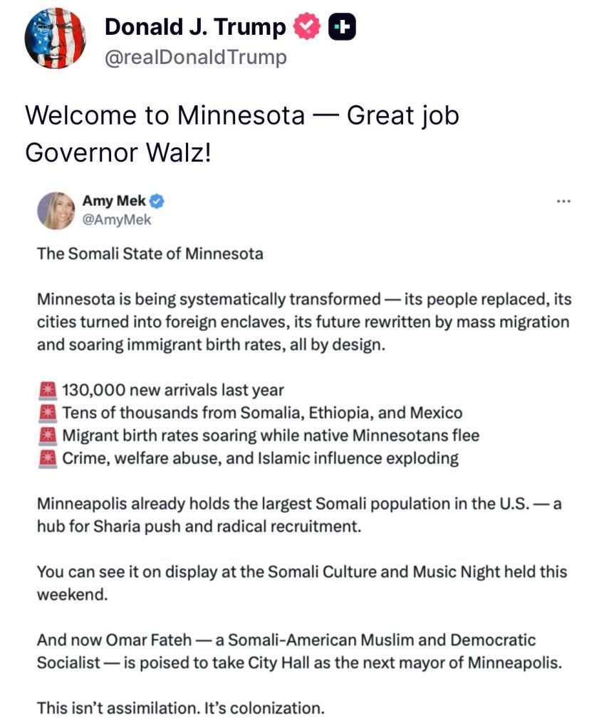 Much of this is inspired by Trump’s clear leadership in standing up for his country’s and citizens’ interests and welfare. There is finally clearer perception of what the threats are in the US. Trump even posted this on his Truth Social account on the rising Islamist trend in Minnesota: