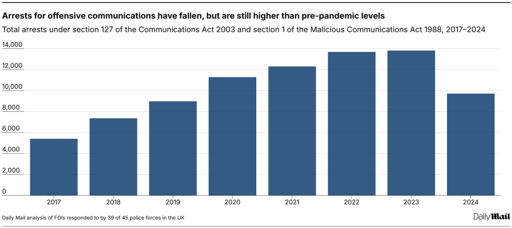 The alarming differences in arrest rates have provoked criticism from civil liberties groups, who say that some authorities are over-policing the internet and threatening free speech through ‘vague’ communications laws.
