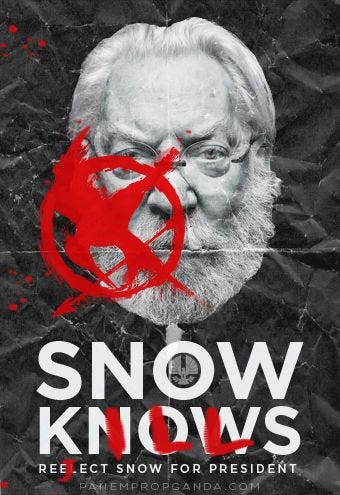 As the harsh President Coriolanus Snow, the nemesis of the films, says at the end of the third film (lines that are repeated at the end of the prequel): “It’s the things we love the most that destroy us.”
